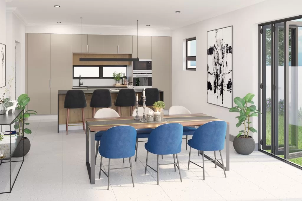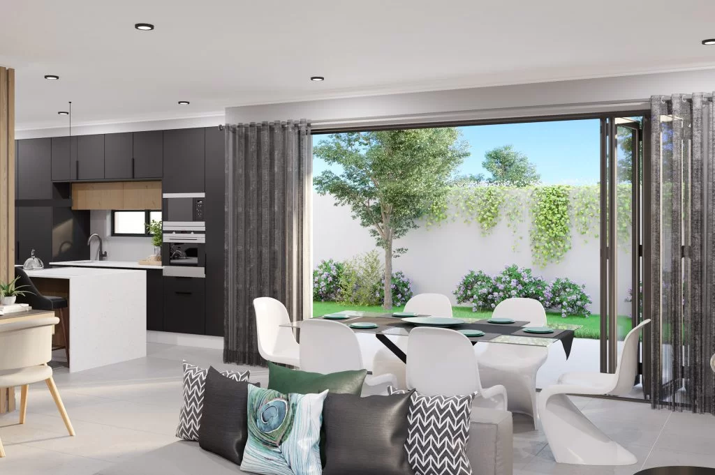 Using high quality finishes and expert craftsmanship, Weaver Creek also offers homeowners a further opportunity to put their individual stamp on the home. Specially curated by Lumal Projects’ in-house design team, new owners have a choice of finishing palettes encompassing elements from kitchen finishes, light fixtures to flooring options. The result is a tasteful rendering that is uniquely yours. The kitchen design encompasses quality built-in SMEG appliances, including oven and gas hob, microwave, and fully integrated fridge-freezer. Each unit also includes a range of luxury fittings such as glass balustrades, stackable doors, and an oversized main shower.